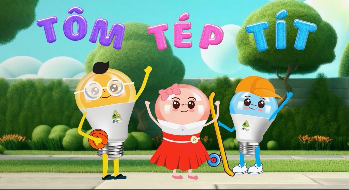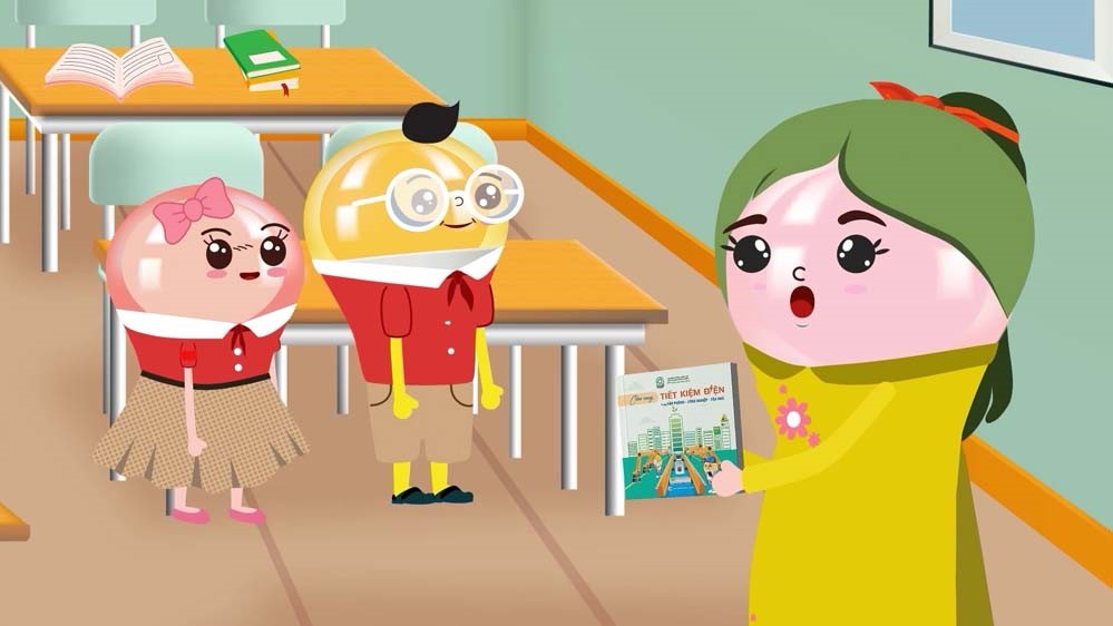 Quá trình thực hiện VTKmedia thiết kế bộ nhân vật chính là các bóng đèn được nhân hóa thành hình tượng vui nhộn, gần gũi, giúp truyền tải kiến thức tiết kiệm năng lượng một cách sinh động, dễ hiểu và dễ nhớ.